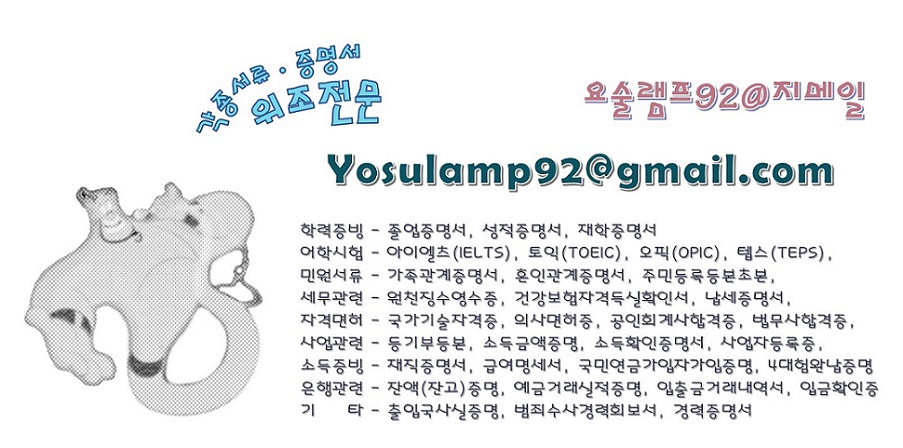 Ŀェ연중무휴 >> yosulamp92 지.멜. >>각종서류증명서자격증 전문제작>>고객님께서OK할때까지 GO┲㎞?┒?